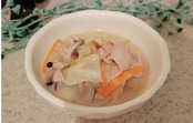 豚肉とお野菜がたくさん摂れる豆乳を使った、とんこつ風のスープです。